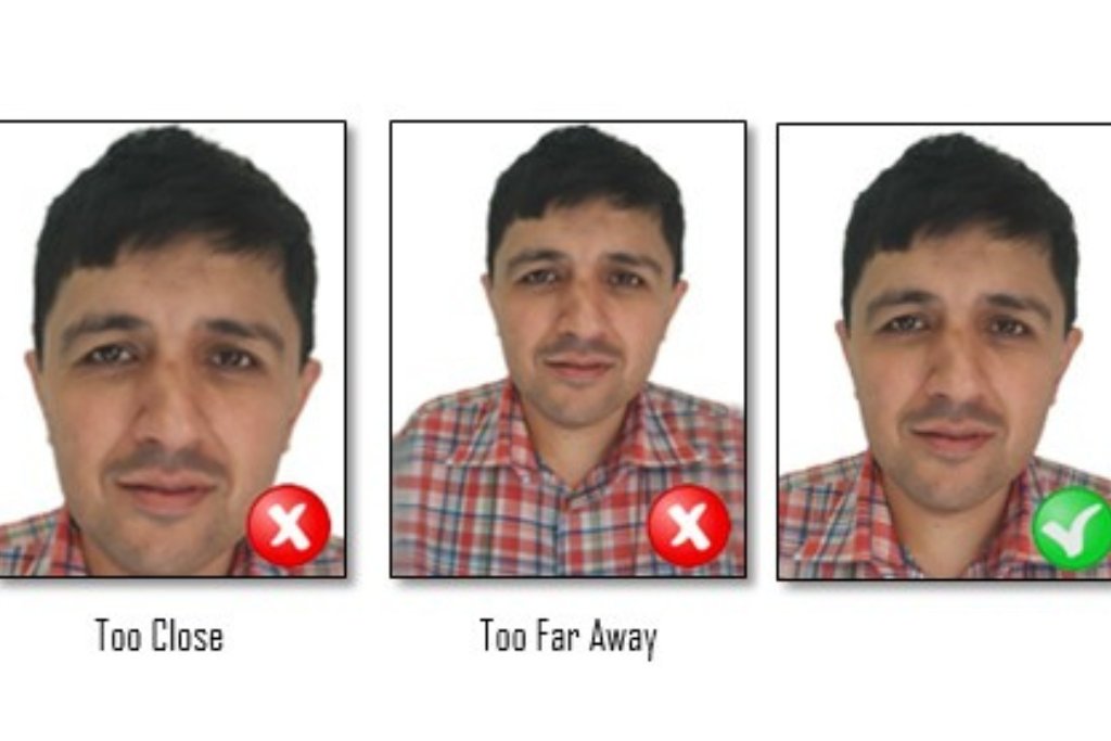 • Face fully visible and centred; no sunglasses, hats, or head coverings (religious head coverings are permitted if worn daily)